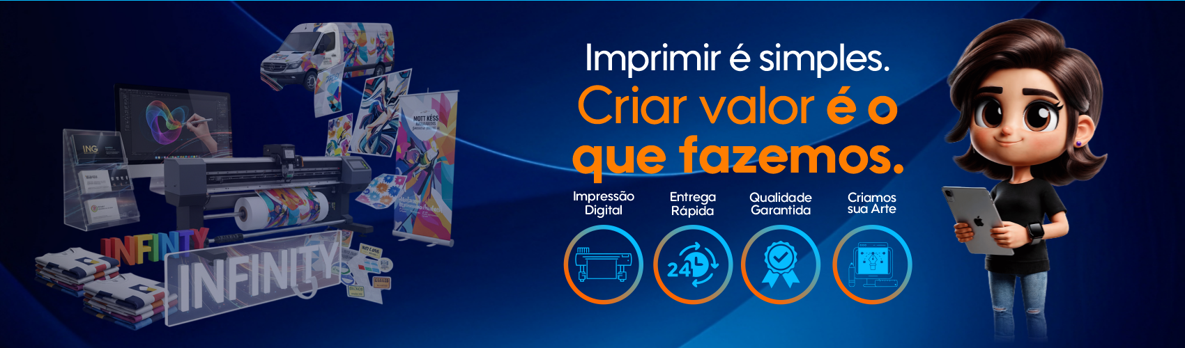 Fortaleça a identidade da sua marca com brindes publicitários feitos à medida. Criamos produtos personalizados que promovem a sua empresa de forma criativa e duradoura. Chaveiros , t-shirts, canetas, sacolas e muito mais — tudo com o seu logótipo e qualidade profissional da Gráfica Infinity Art.